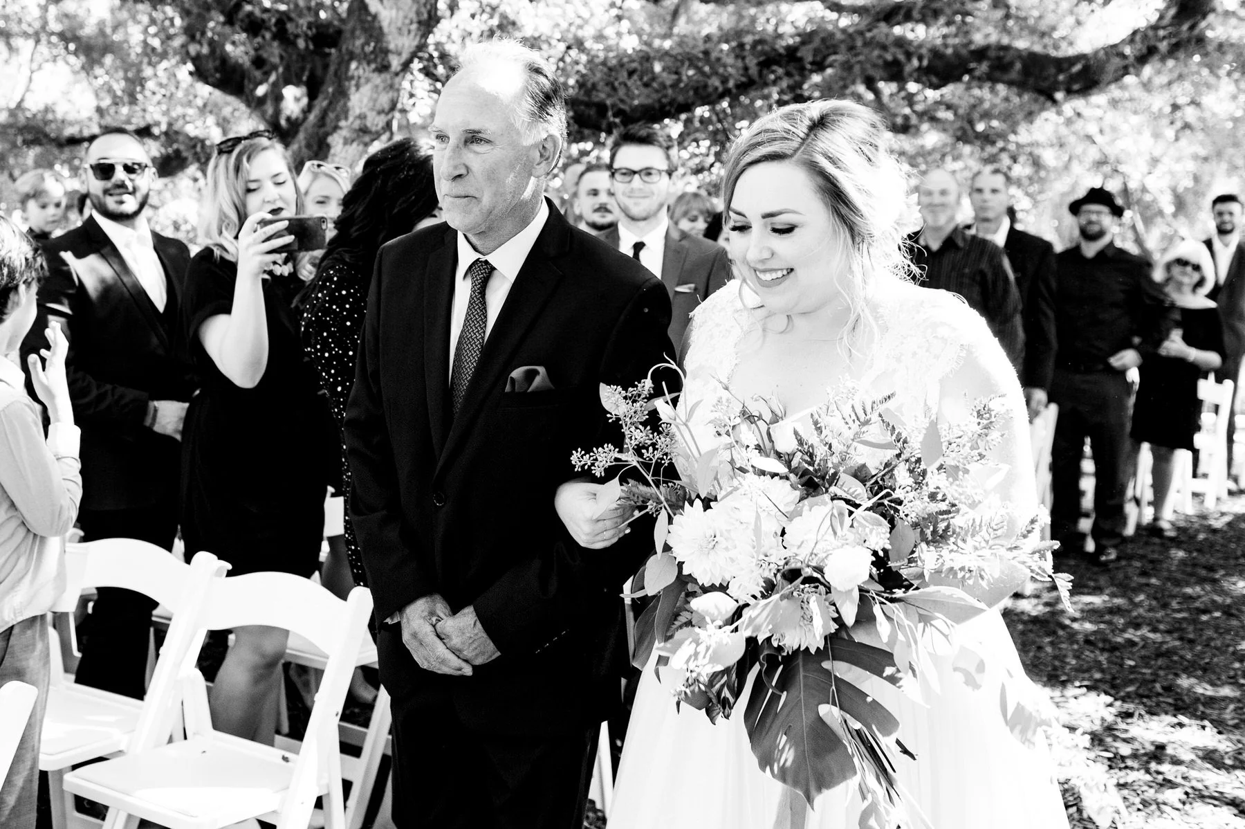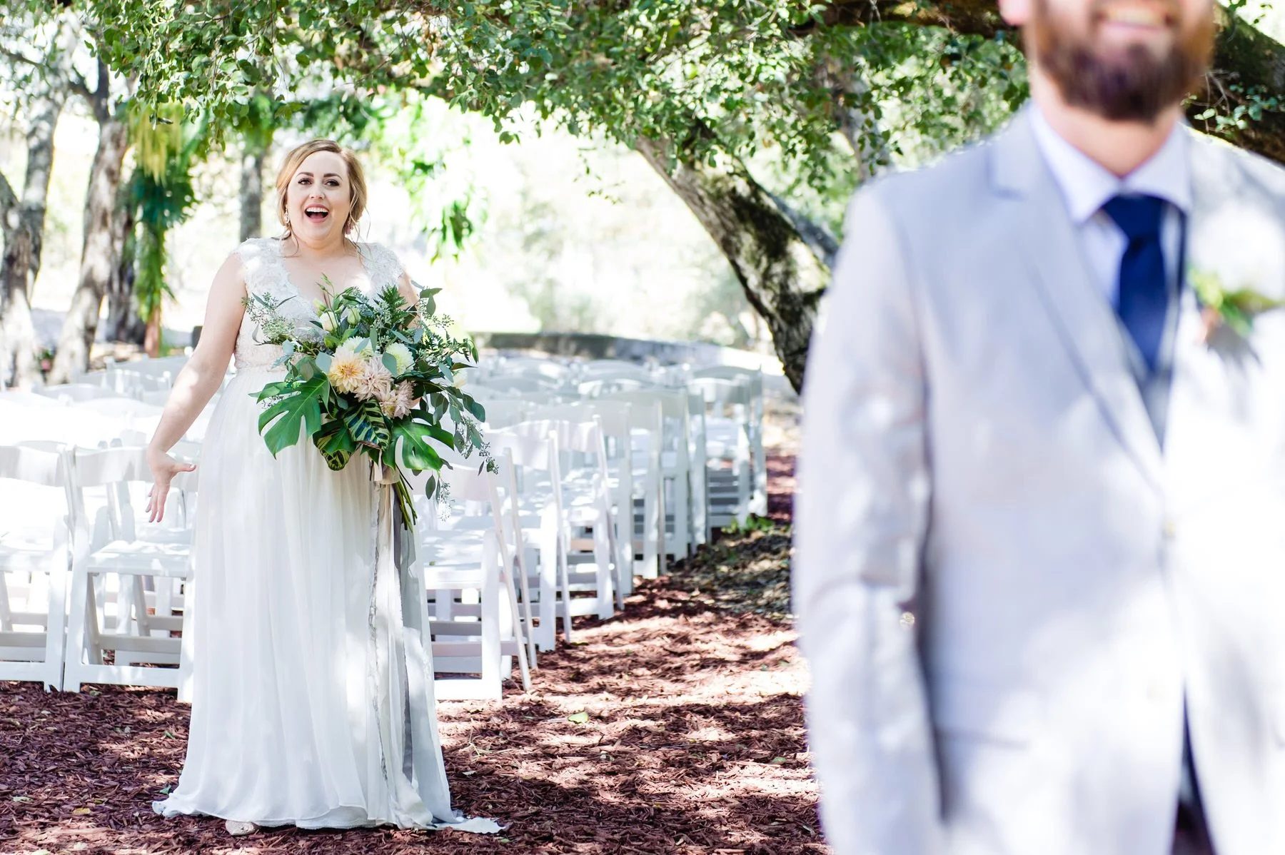 “We got married at my brother and sister-in-law’s private residence, right outside of Santa Cruz, CA, where I grew up. Their property is about 11 acres, with the most beautiful oak trees and when they offered their land to be our venue, we were overjoyed… but I don’t think any of us knew what we were getting ourselves into!”