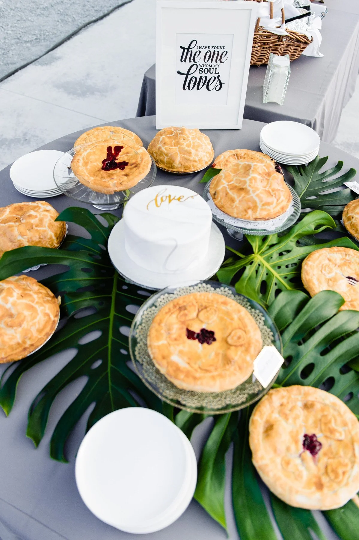 “Another fun DIY element were our place settings. Instead of assigning guests to a specific seat, I decided to assign everyone to specific tables, where they could sit wherever they wanted at that table which was so.much.easier. Since we were placing our menus inside napkins at each place setting, I wanted something to hold it down that would look elegant.