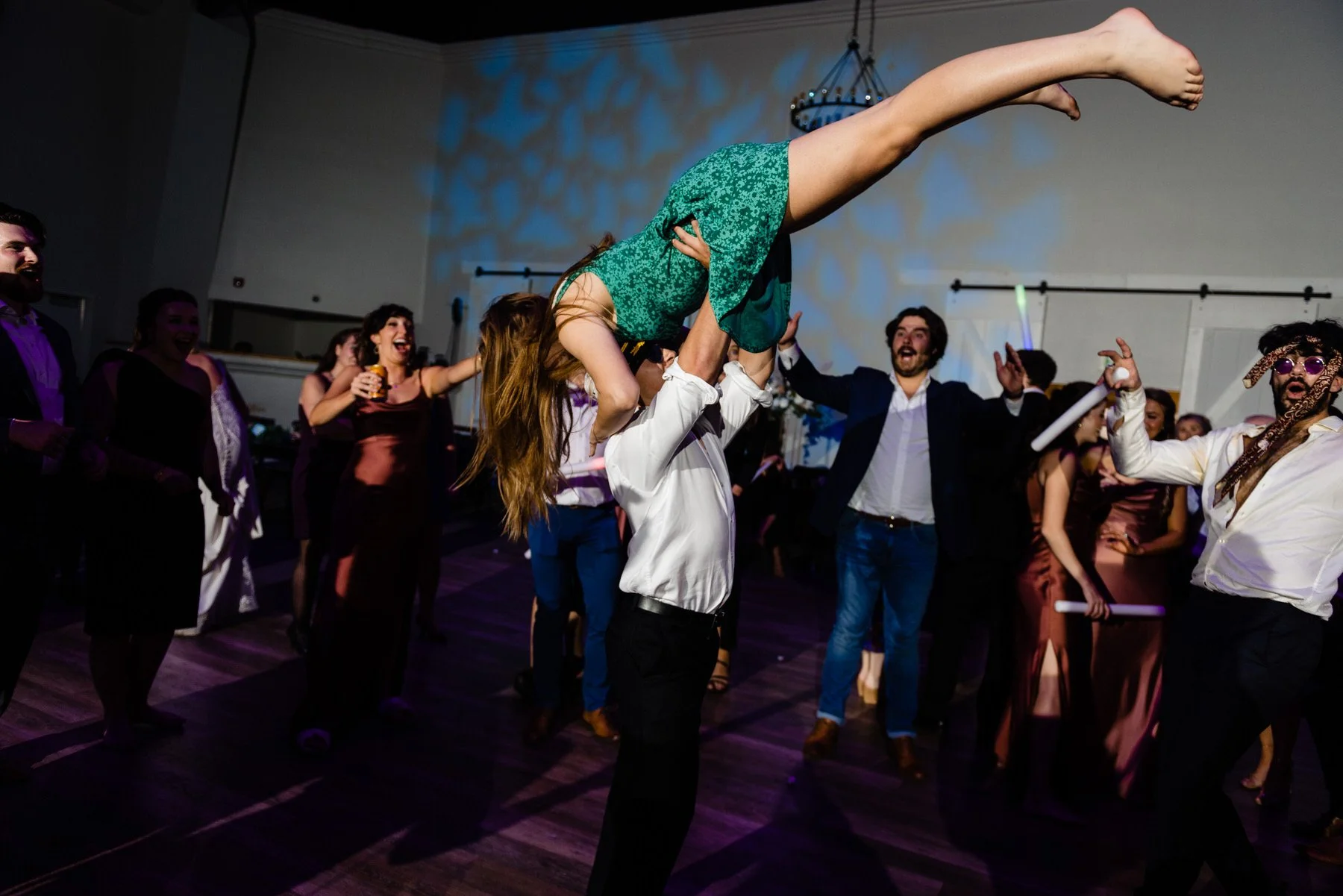 The wedding party made a memorable entrance in full costumes, setting the tone for an unforgettable reception. Danny had been talking for months about the neon foam sticks, “I can’t wait for the neon foam sticks at the dance party”, and when they finally hit the dance floor, the energy skyrocketed. Guests waved them in the air, people were lifted up during songs, and more than a few brave dancers took to the tables.