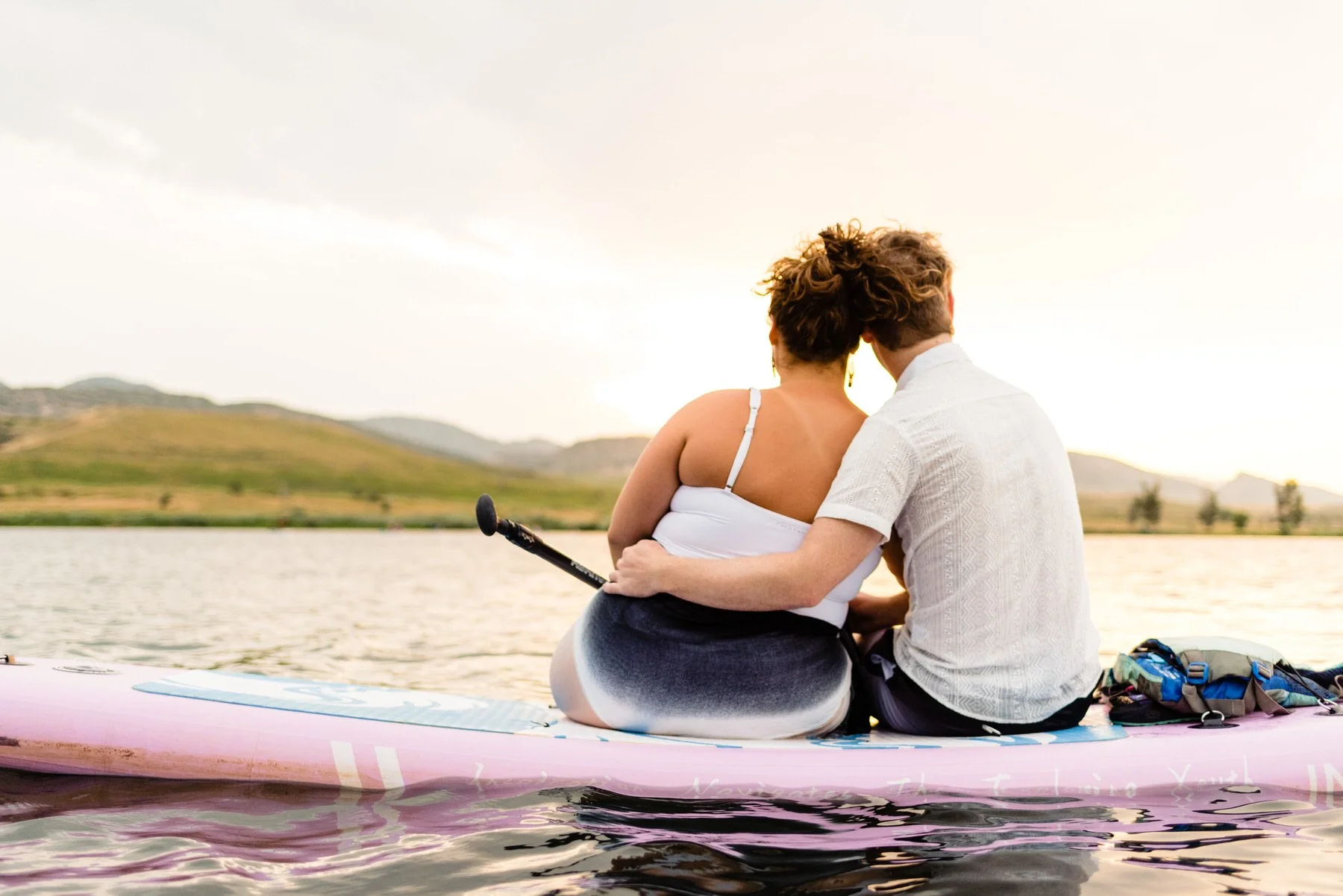 If you and your partner love adventure, a paddle board engagement session is such a fun and meaningful way to celebrate your story. Whether you’re experienced like Elise or just starting out, being on the water adds a level of joy and authenticity to your session that’s hard to replicate. Plus, Chatfield State Park offers one of the most picturesque backdrops for outdoor engagement photos in Colorado.