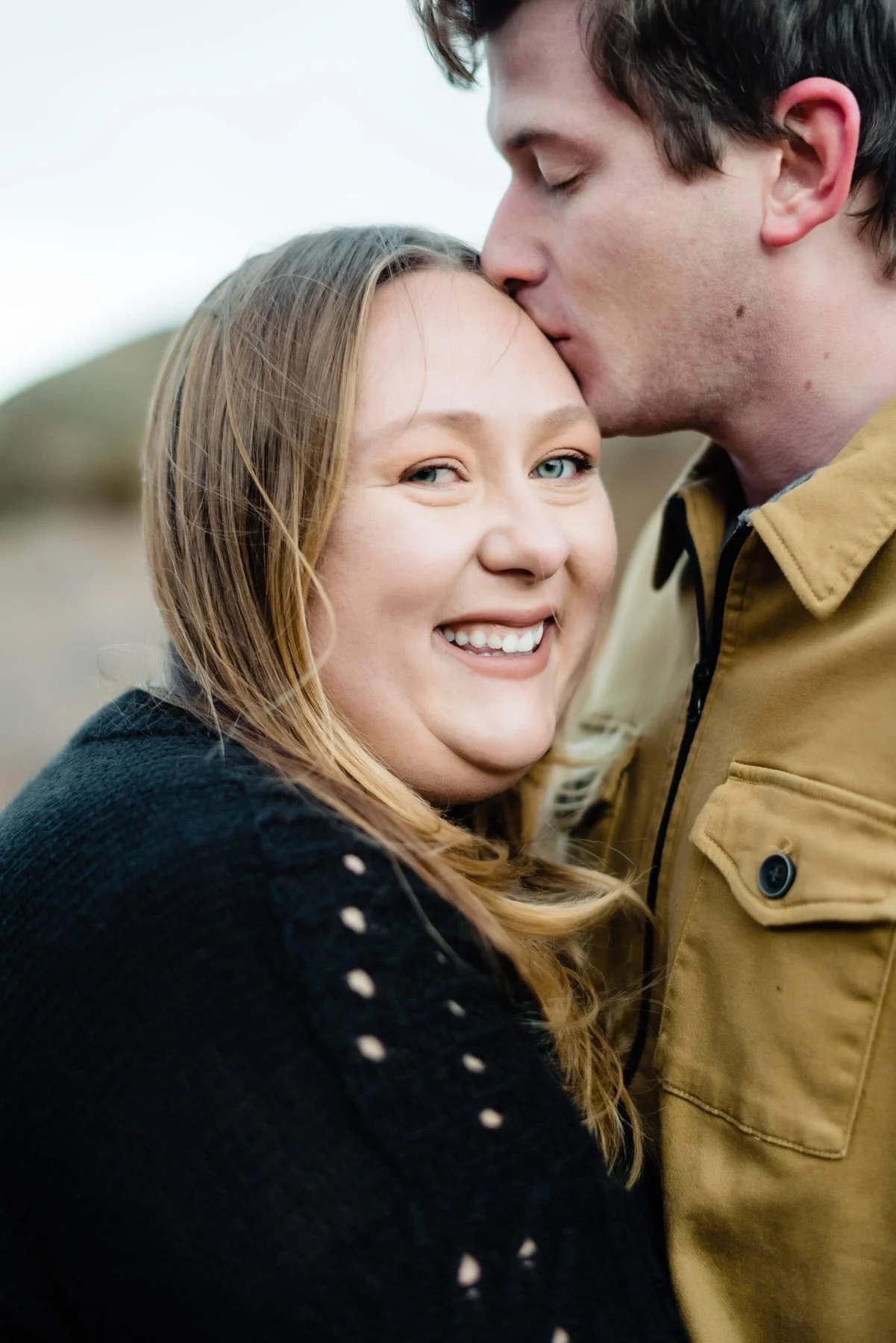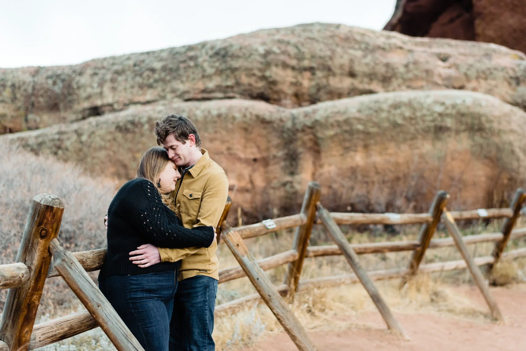 This session didn’t happen without a few hurdles. We had originally planned several different sessions across beautiful Colorado locations, but between blizzards, park restrictions, and busy schedules, Mother Nature kept us on our toes. The delays ended up being worth it though, the soft snow, moody skies, and peaceful calm of Red Rocks in the winter gave us something truly special. And yes, it was chilly… okay, really chilly… but that just made Sarah and Jake’s connection shine even brighter.