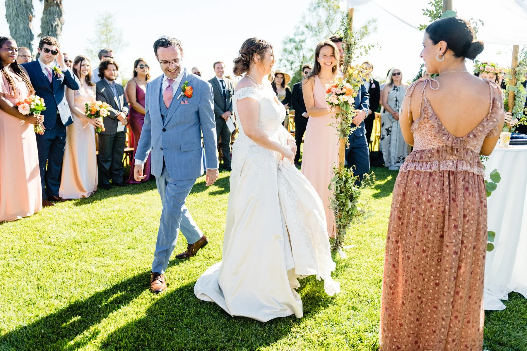 Next, we were off to the ceremony! Liz and Dan had a circular ceremony, meaning they were standing seated in the middle with their guests surrounding them, a design they chose because they wanted to be “wrapped with love and support on all sides.” With the scene beautifully set, their traditional Jewish ceremony was heartfelt. They included the reading of the Seven Blessings and stomped a glass to the cheers of their guests. But the moment I’ll never forget was when all the guests hushed as Liz and Dan were wrapped in a tallit prayer shawl that is Liz’s family’s most treasured heirloom. Liz’s grandmother saved this exact tallit from a burning synagogue on Kristallnacht. As they were pronounced husband and wife (again!), their guests wiped away tears and shared the joy of this couple they love so much.