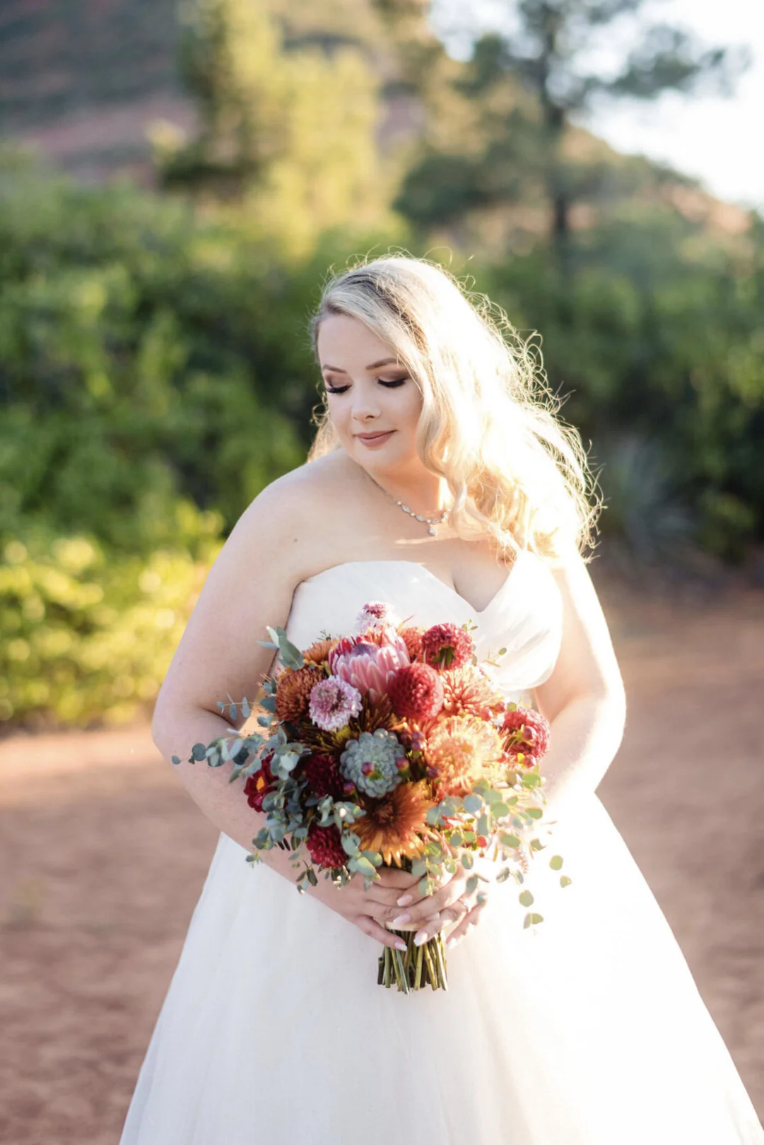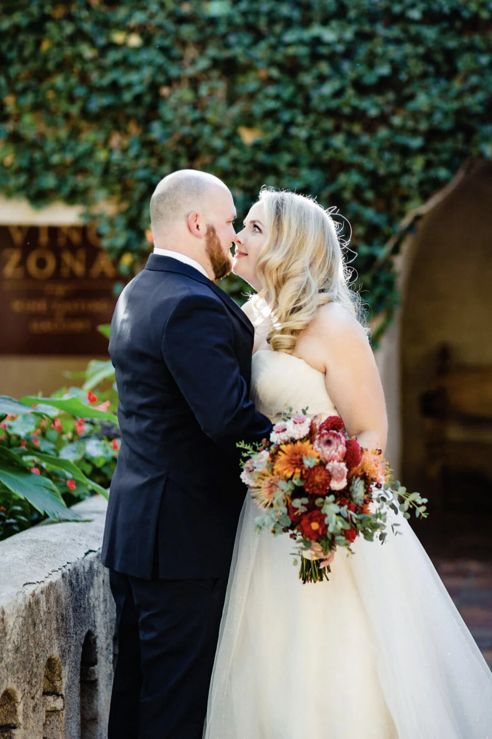 When I heard that Alisha and Kyle were having a destination wedding in Sedona, Az at Tlaquepaque Arts & Shopping Village, I was the epitome of excited for so many reasons. The colors were amazing, and they based their entire wedding decor around the setting sunset of Sedona, Az; pairing fall colors heavily with greenery. But truly, the first reason being that Alisha and I grew up together, and watching people I know grow up into beautiful adult versions of their childhood selves is my favorite thing of being in the wedding industry.