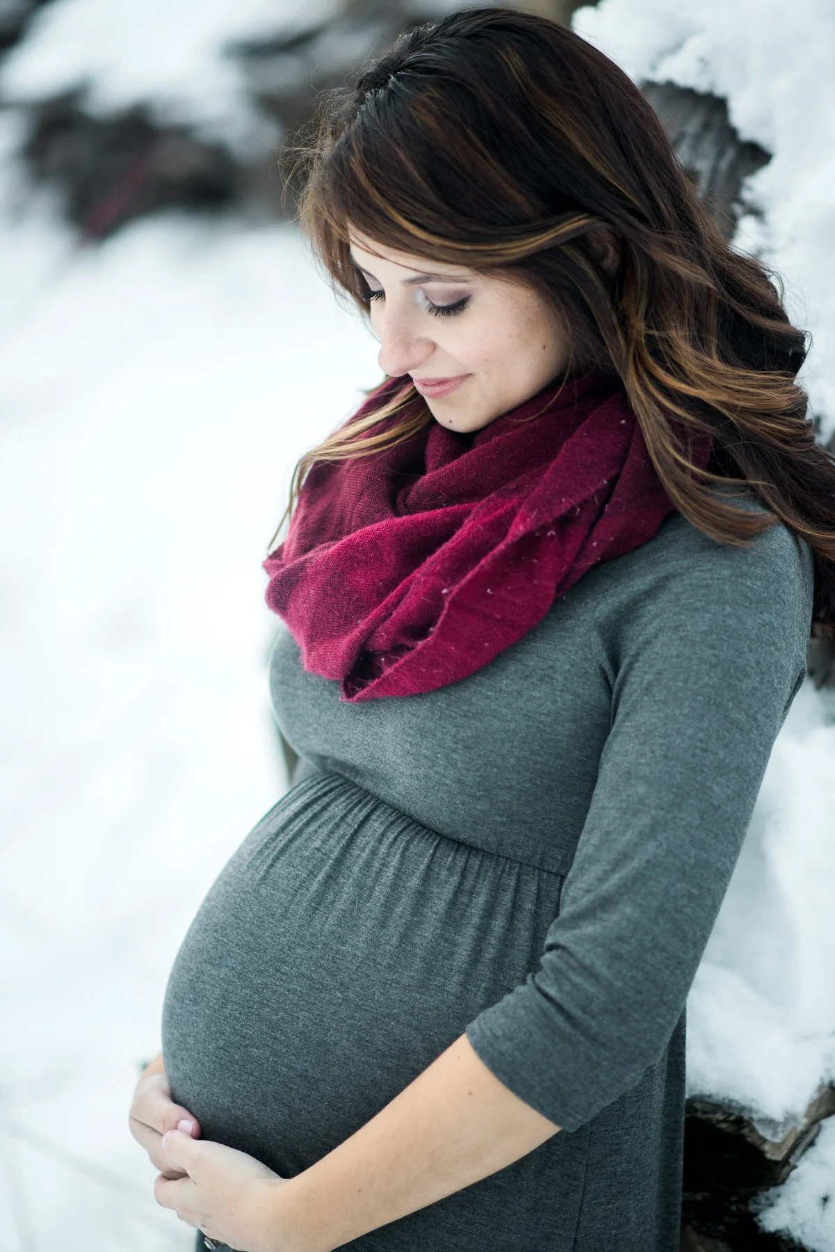 Megan and I were so absolutely blessed with not only finding some snow, but a beautiful roaring river in Truckee, California for her maternity session. The temperature was cold, and Megan battled the snow for her baby bump photos like a champion. We even were able to get a peak of sunset while shooting. Pink Blush Maternity made for the perfect outfit to match the beautiful environment.