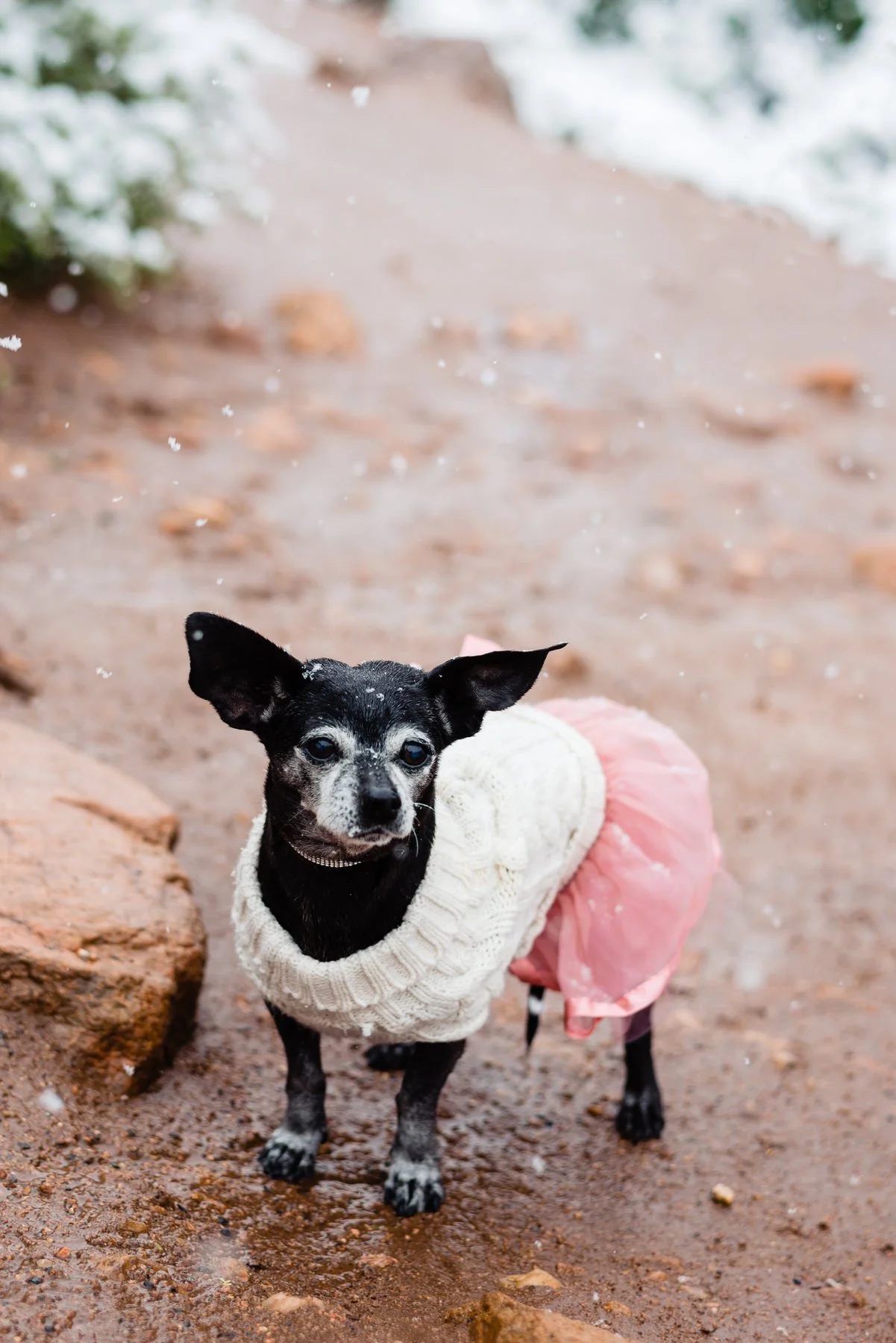 Colorado’s elevation can sneak up on you during an engagement session. Higher altitudes mean thinner air, stronger sun, and quicker fatigue, for both you and your dog.